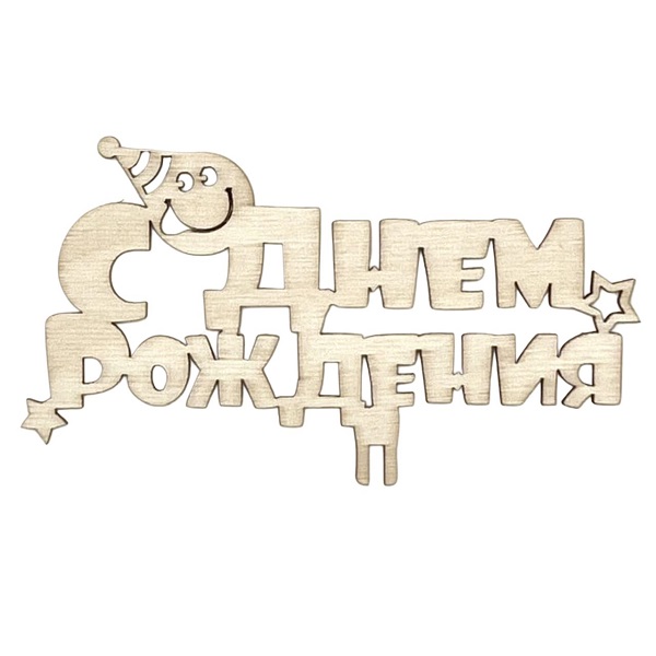 Топпер "С Днём Рождения" №16, 5шт/уп, натуральный