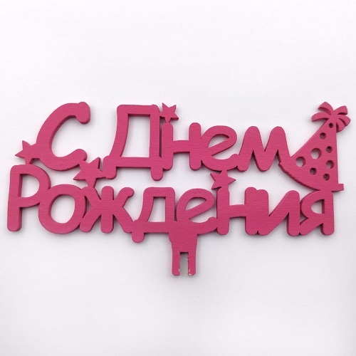 Топпер "С Днём Рождения" №18, 5шт/уп, 125/65мм, ягодный