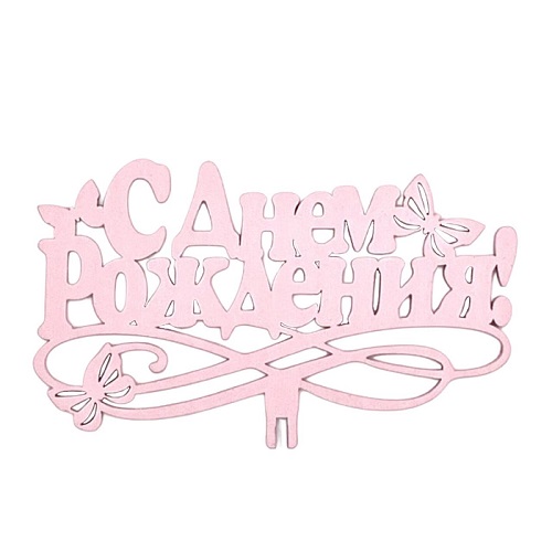Топпер "С Днём Рождения" №5, 5шт/уп, 125/75мм, розовый