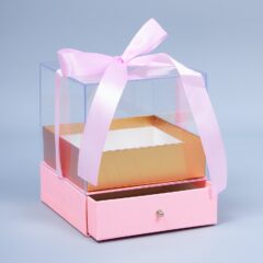Коробка акриловая подарочная с ящиком и крышкой, 14,5*14,5*16,5, розовый