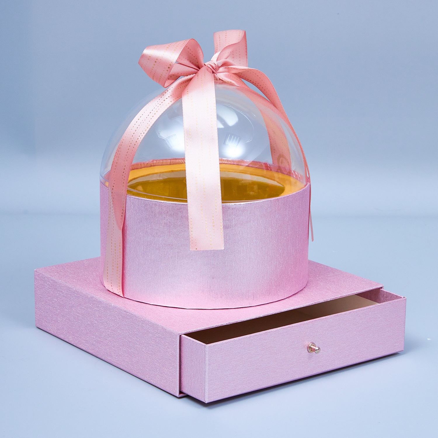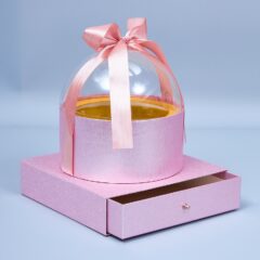 Коробка акриловая с ящиком, 20*20*20см, розовый жемчуг