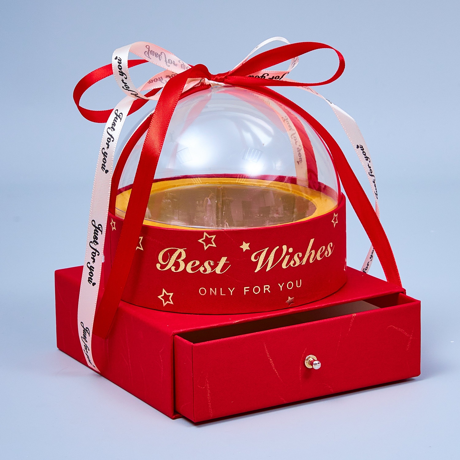 Коробка акриловая с ящиком и крышкой, 14,5.*14.5*16см, красный