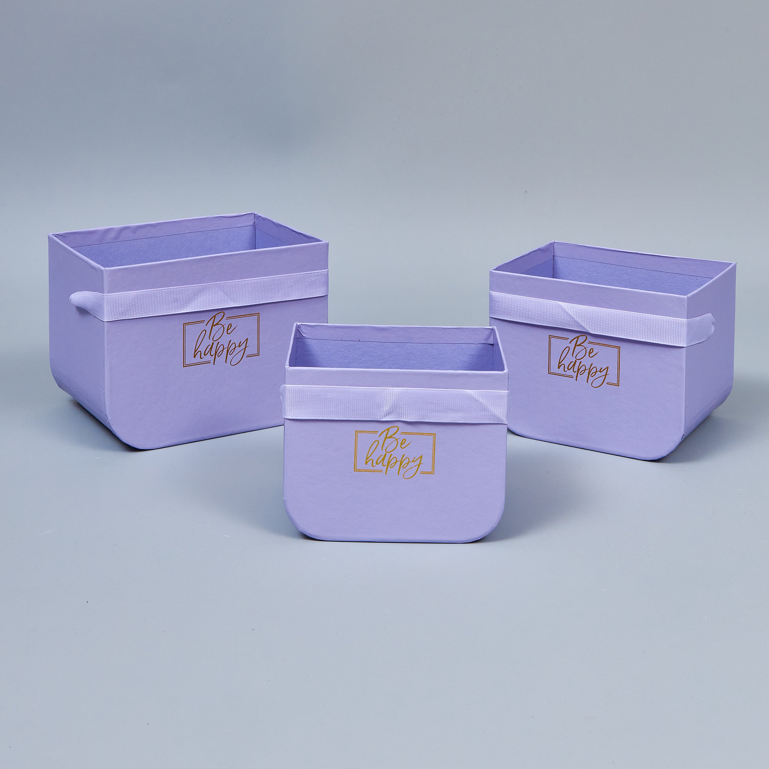 Набор коробок под цветы "Be happy" 3шт, L:16.5x12x12.5см, M:14x11x11.5см, S:12.5x9x10см, фиолетовый