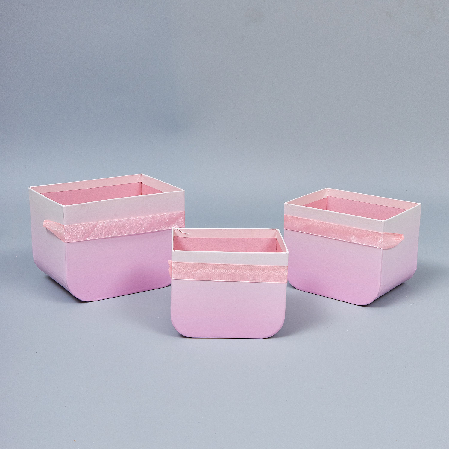 Набор коробок под цветы "Градиент" 3шт, L:16.5x12x12.5см, M:14x11x11.5см, S:12.5x9x10см, розовый