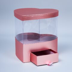 Коробка прозрачная металлик "Сердце" 21.5x22.5x21.2см, розовое золото