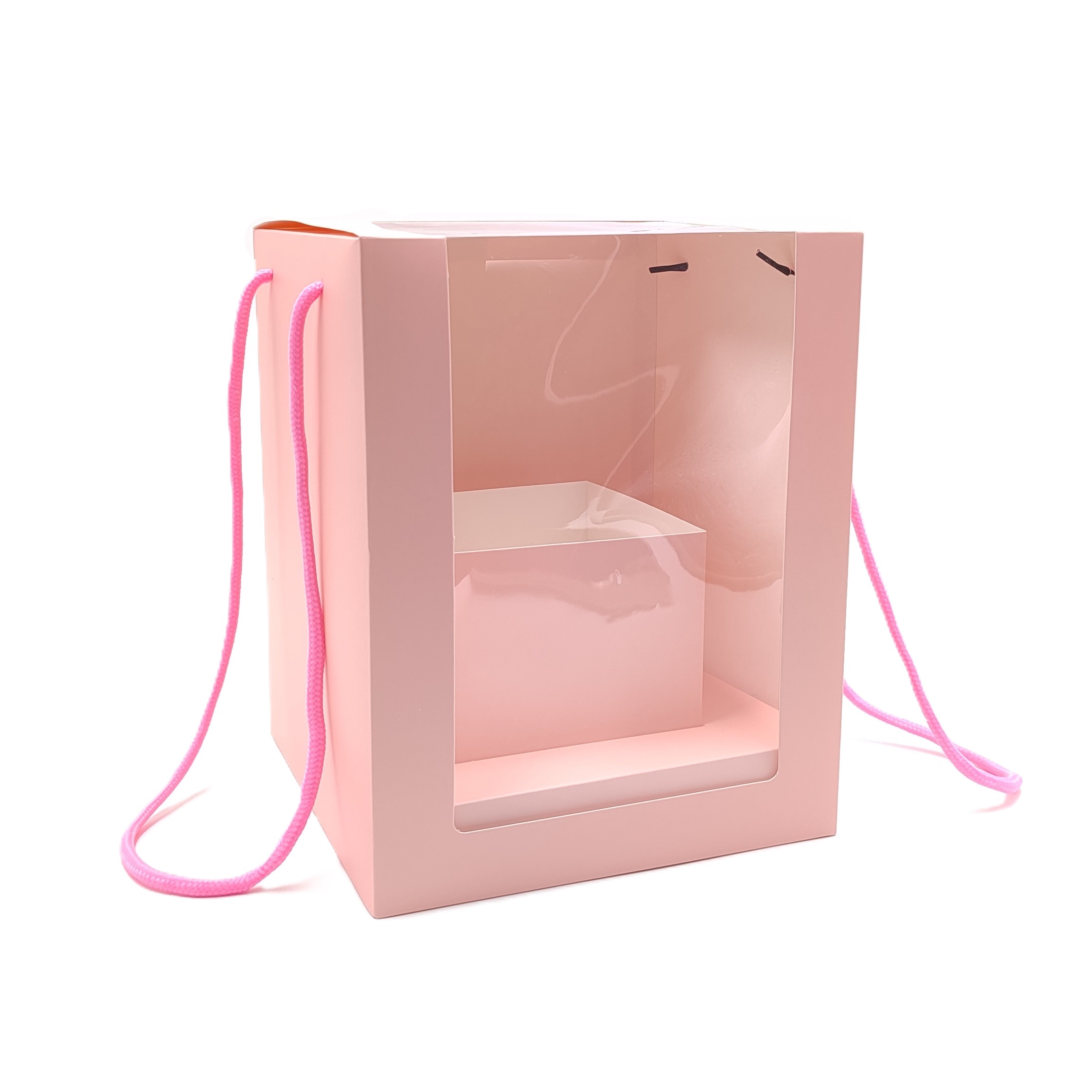 Коробка-трансформер прозрачное окно 20*20*25см-сборная, розовый