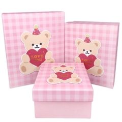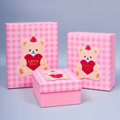 Набор коробок, 3шт, "Мишутка", 25.5*20.5*10.5, 21.5*17.5*9.5, 16.5*14.5*8.5см, розовый