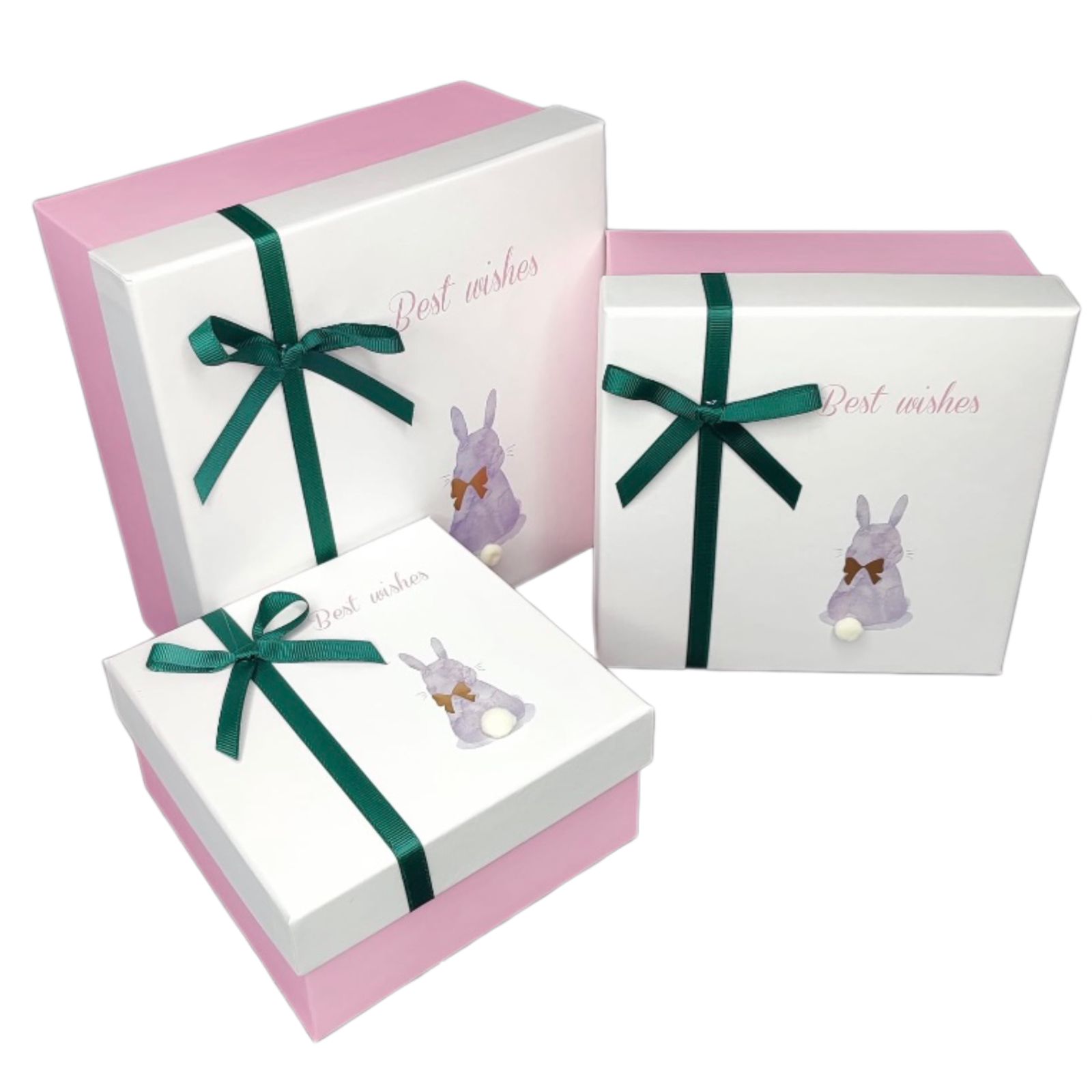 Набор коробок, 3шт, "Зверята", 21*21*10, 17*17*9, 14*14*7см, ярко-розовый/белый