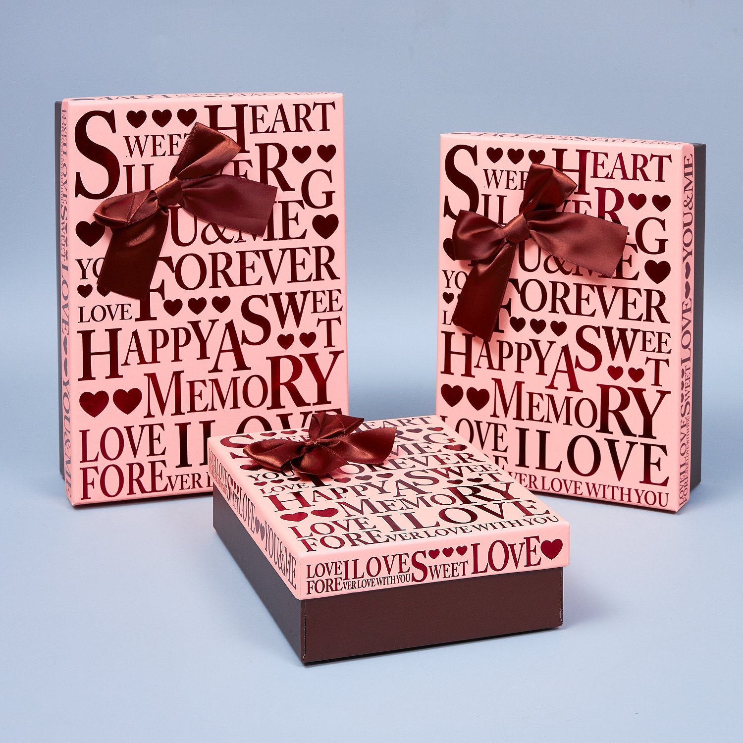 Набор коробок металлик "Happy" 3 шт, 29*21*9,5; 26*19*8; 23*17*6,5см, персиковый/шоколадный