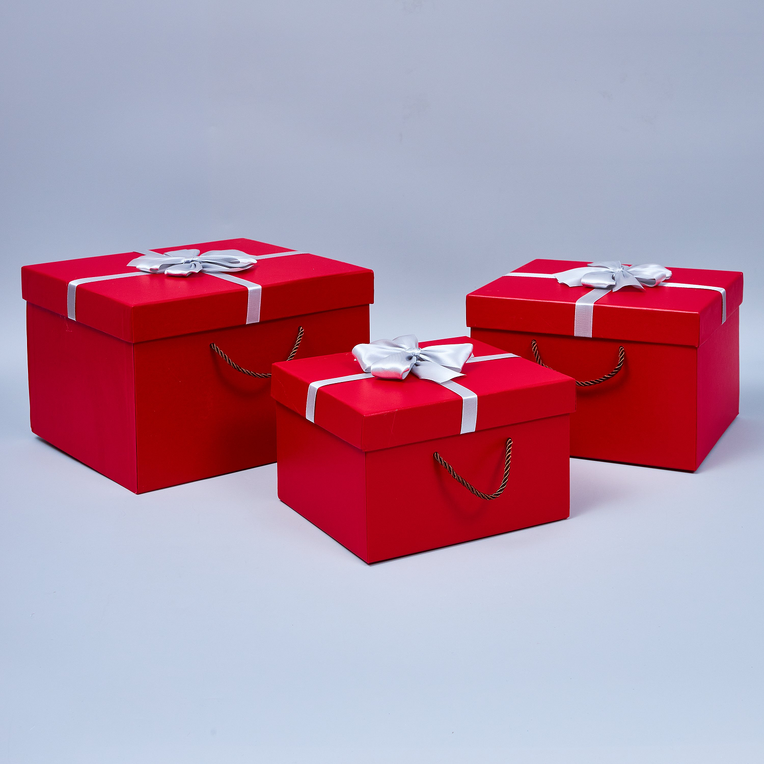 Набор коробок с серебряным бантом, 3шт, красные 29*27*19, 25*23*16.5, 22*19*13.5