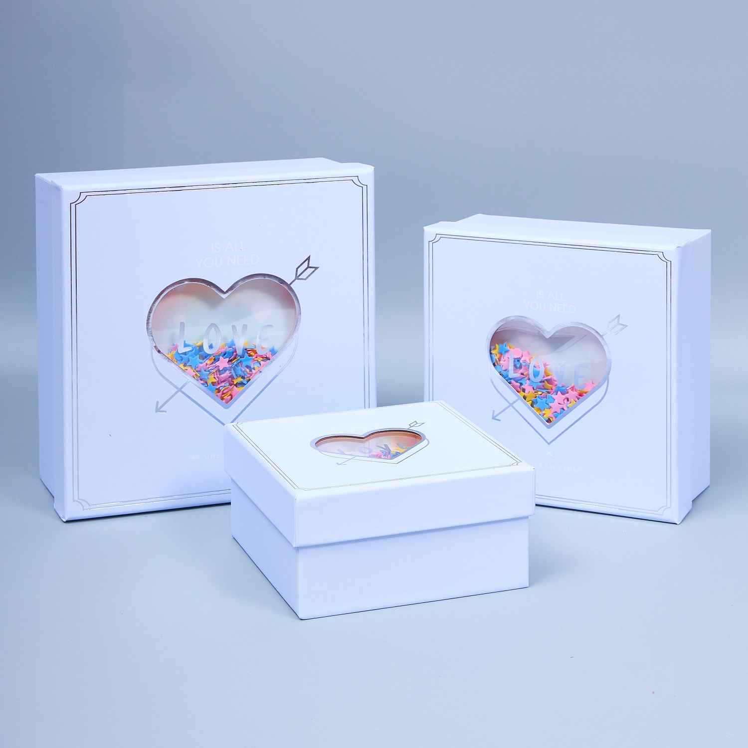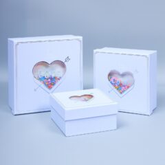 Набор коробок 3D, 3шт, "Сердце со звездочками", 21.5*21.5*10, 18*18*9, 15*15*7.5см, сиреневый