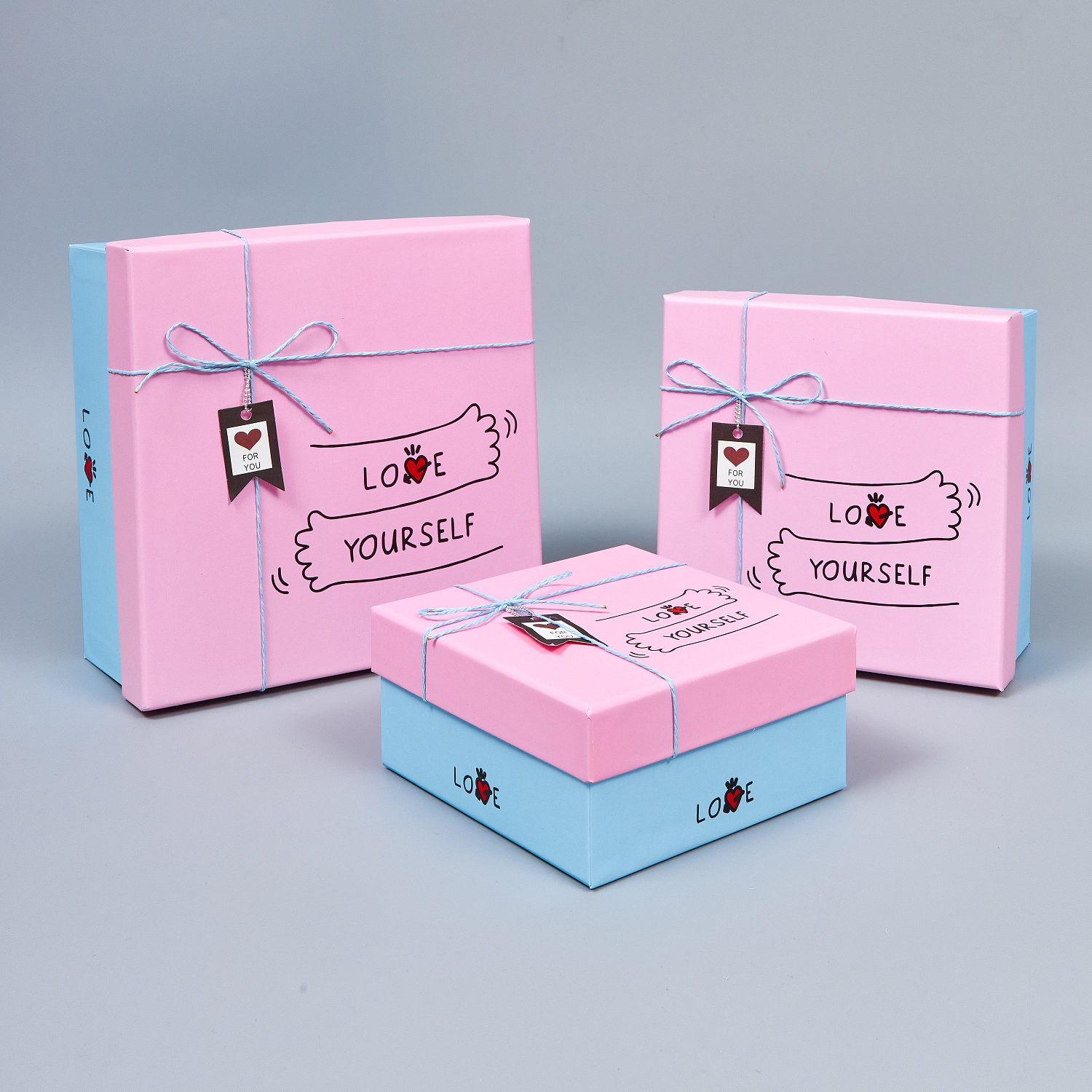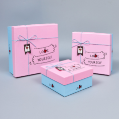 Набор коробок, 3шт, "Объятия", 21*21*10, 17*17*9, 14*14*7см, голубой/розовый