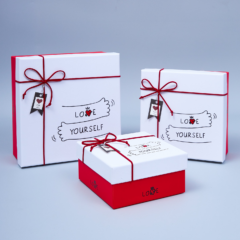 Набор коробок, 3шт, "Объятия", 21*21*10, 17*17*9, 14*14*7см, красный/белый