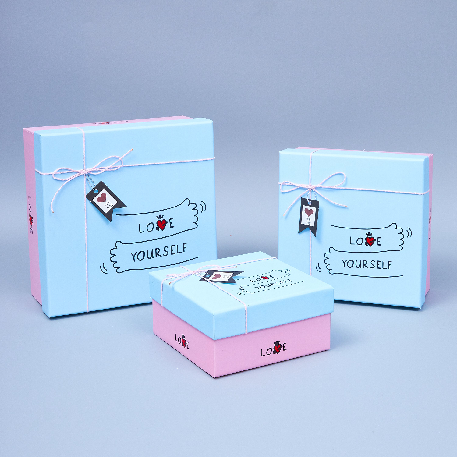 Набор коробок, 3шт, "Объятия", 21*21*10, 17*17*9, 14*14*7см, розовый/голубой