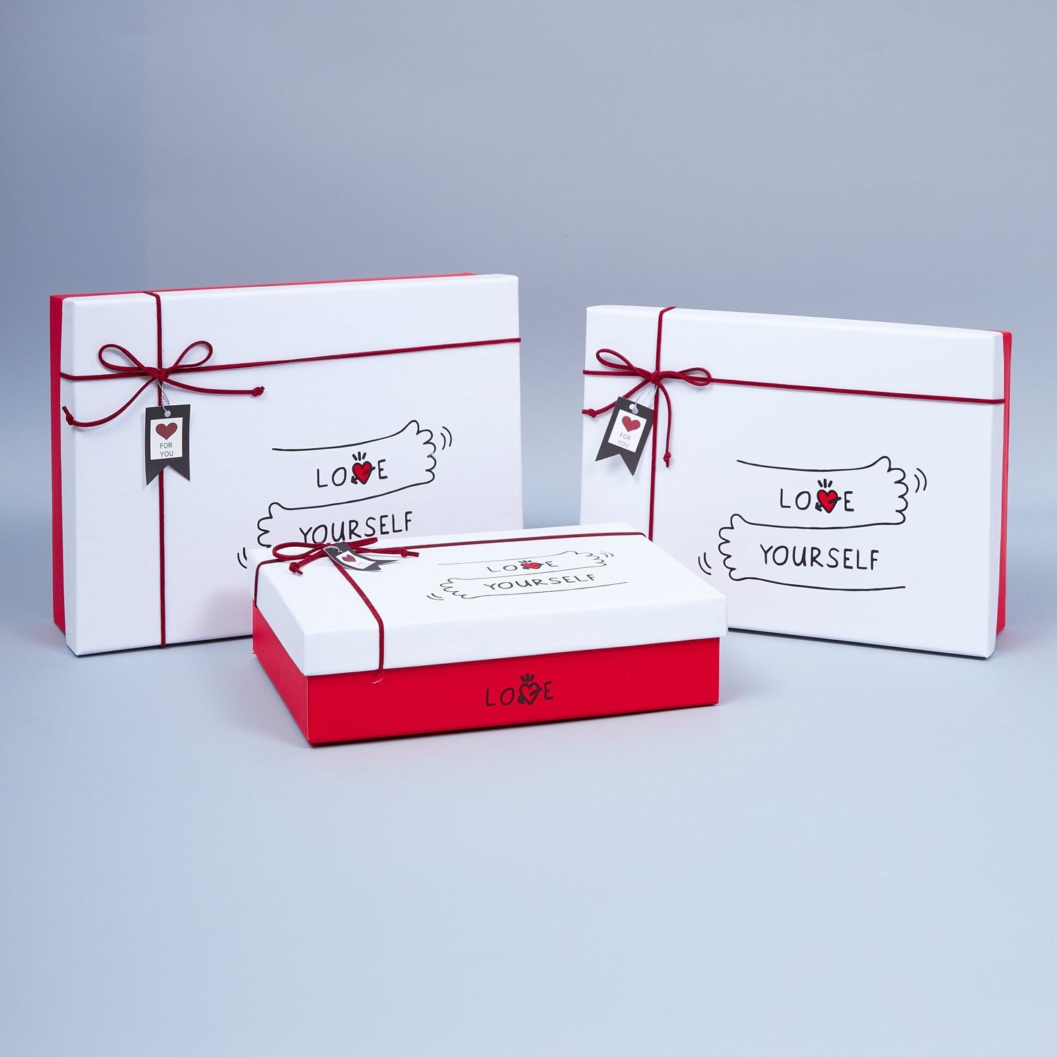 Набор коробок, 3шт, "Объятия", 29*21*9, 26*19*8, 24*17*6.5см, красный/белый