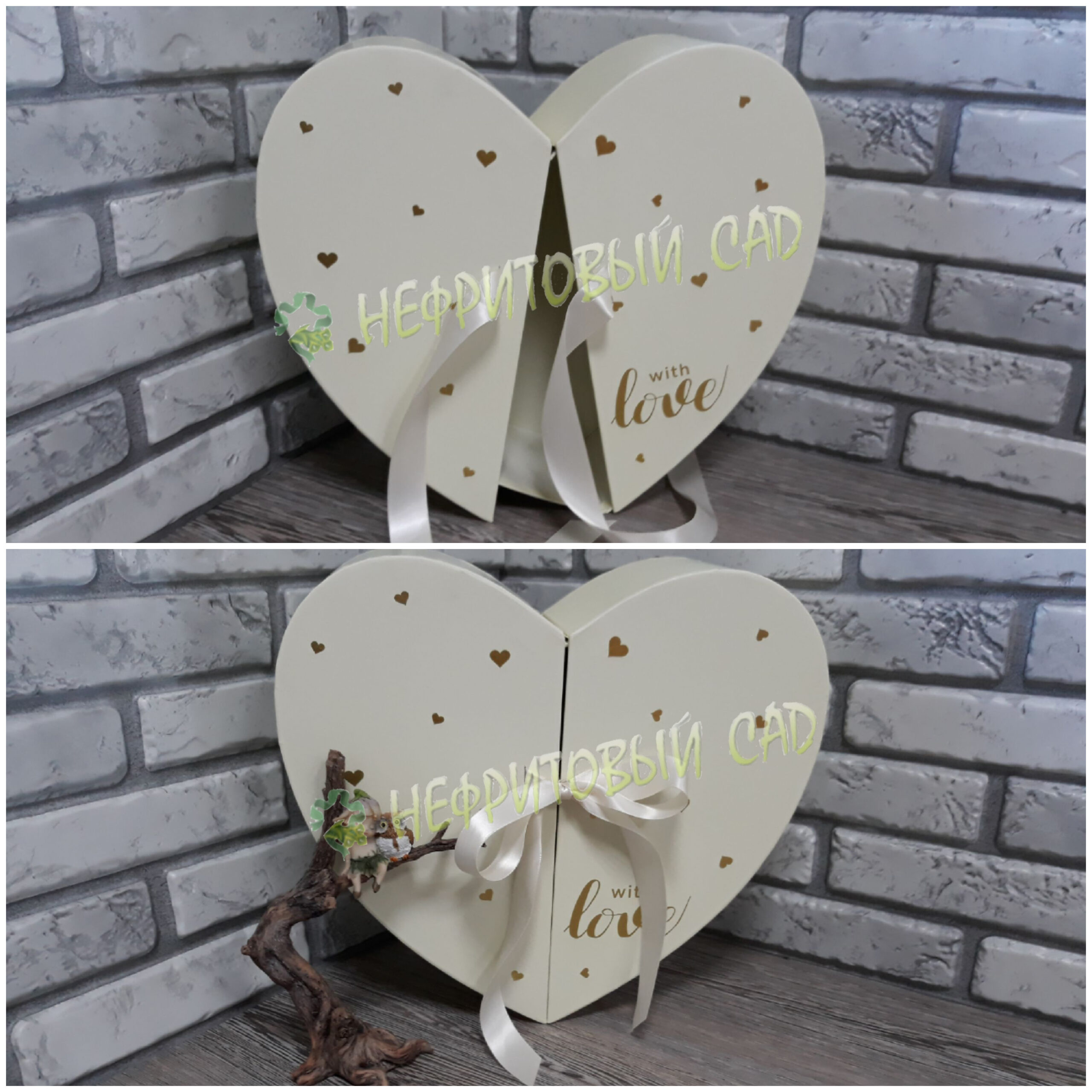 Коробка подарочная "Сердце" 32.3x29x11cm, крем