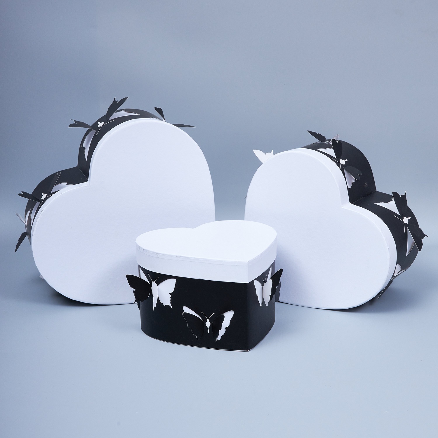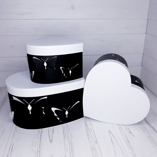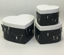Набор из 3-х коробок "Сердца Бабочки", L:28.5x26x15cm M:23.5x22x13.5cm S:19x18x12cm, цв. чёрный