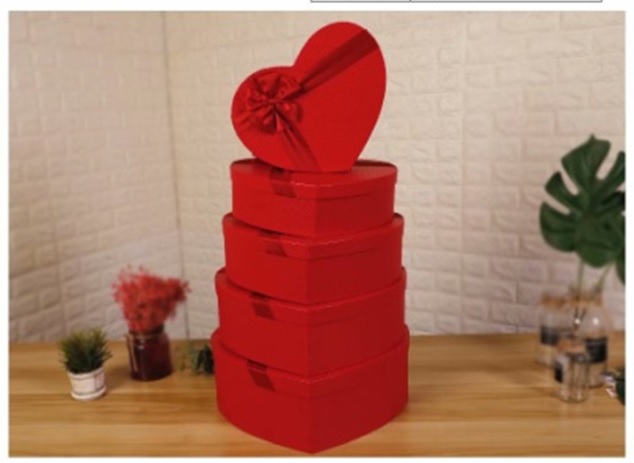 Набор коробок "Большое сердце" 5шт, 43х35.5х13.5, 40.5х33х12, 37.5х30.5х10.5, 34х27.5х9, 30.5х24х9см