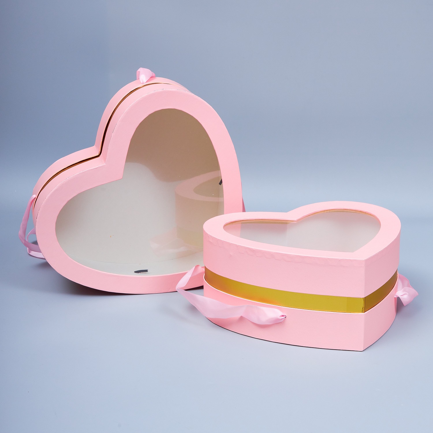 Набор коробок с окном "Сердце" 2 шт, 29х26х12 , 25.5х23х11см, розовый