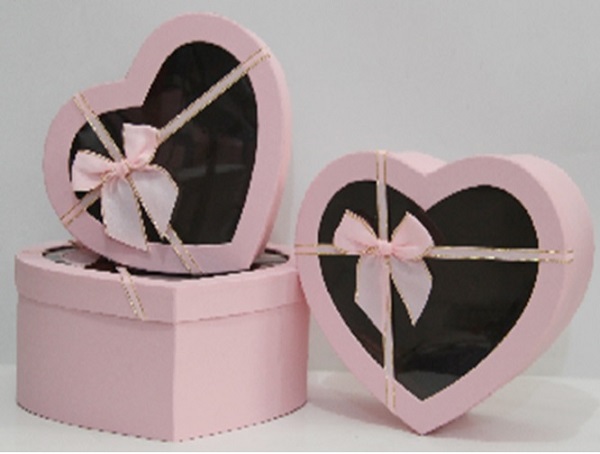 Набор коробок с окном "Сердце с бантом" 3шт, 31*27*13.3см, 27*23*11.7см, 23*20*10.3см, розовый