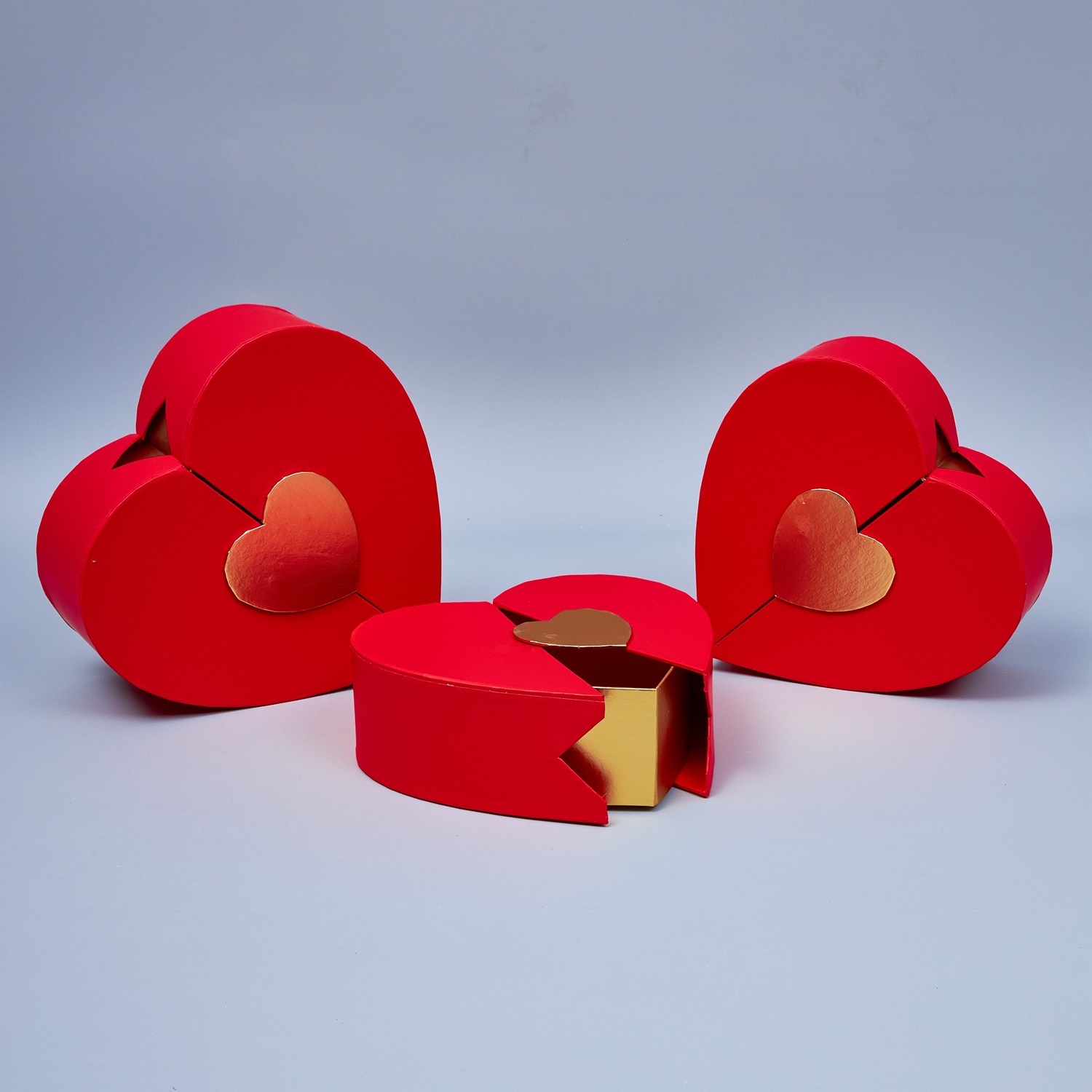 Набор коробок с золотой вставкой "Сердце" 3 шт 25.1x24x10.5см, 22.3x21.3x9см, 20x19x7.5см, красный