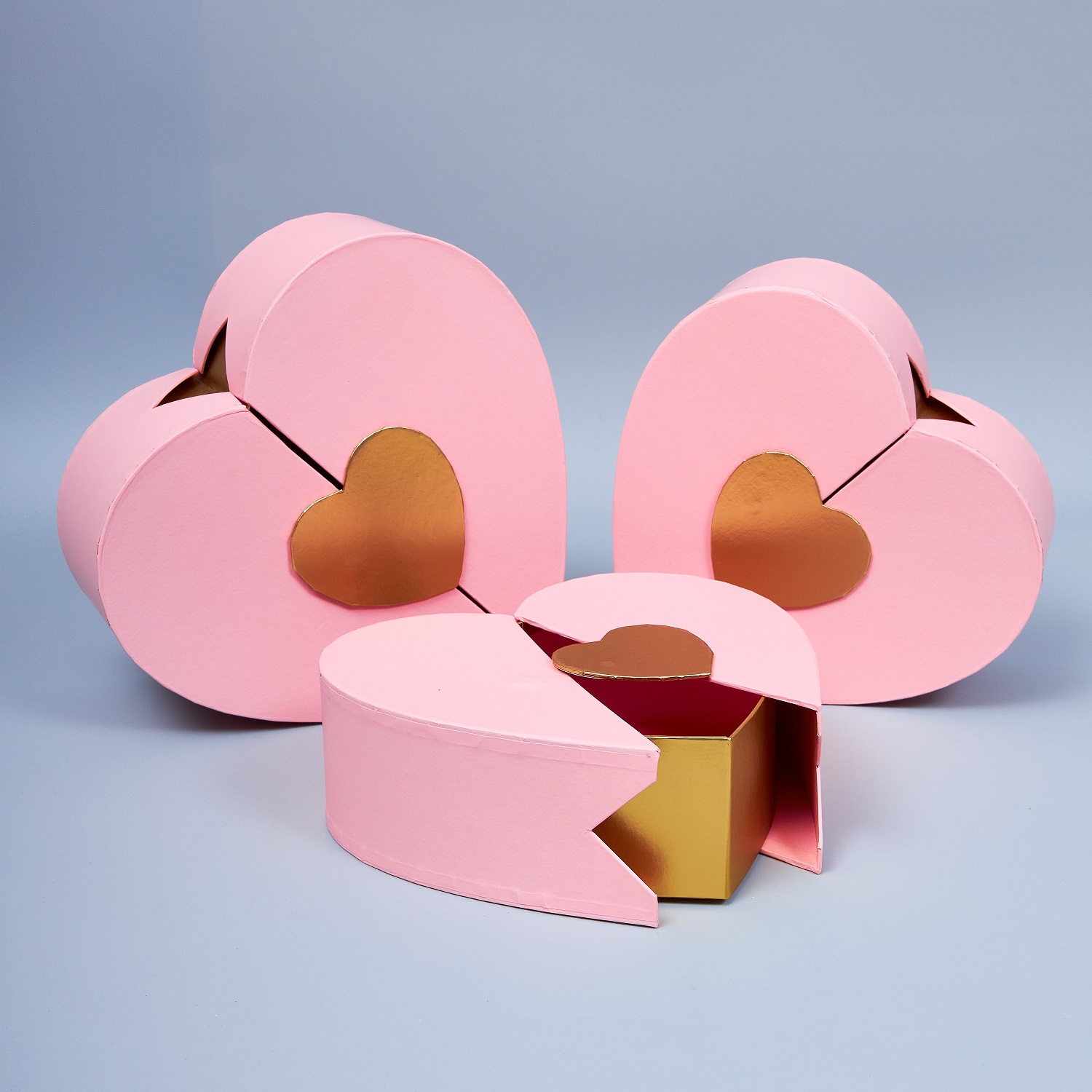 Набор коробок с золотой вставкой "Сердце" 3 шт 25.1x24x10.5см, 22.3x21.3x9см, 20x19x7.5см, розовый