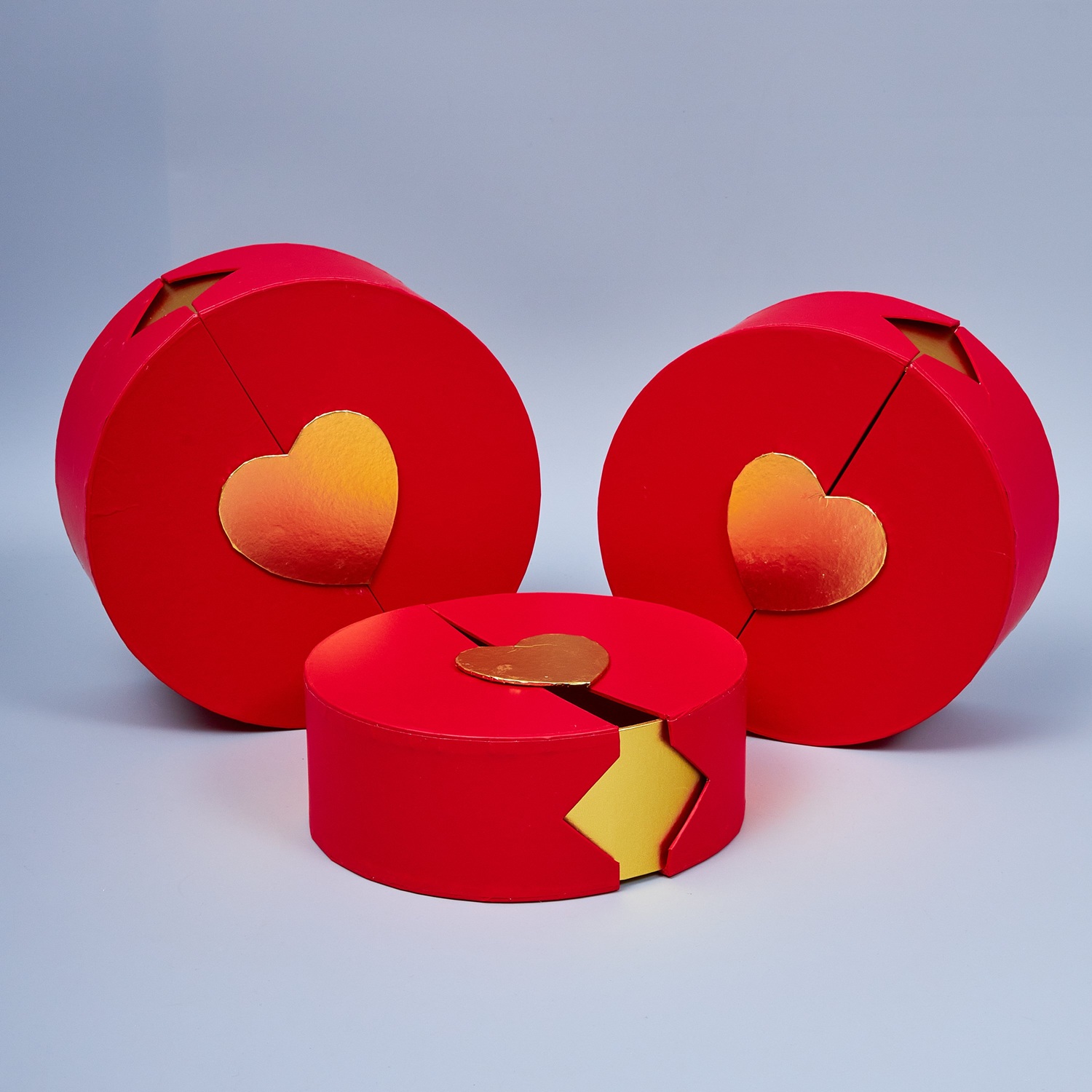 Набор коробок с золотой вставкой "Сердце" круг 23x10.5см, 21x9см, 19x7.5см, красный