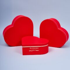 Набор коробок Сердце "Flowers" 3шт, L 28,5*26*11cm, M 25,7*23,5*10cm, S 23,5*21*8,5cm, красный