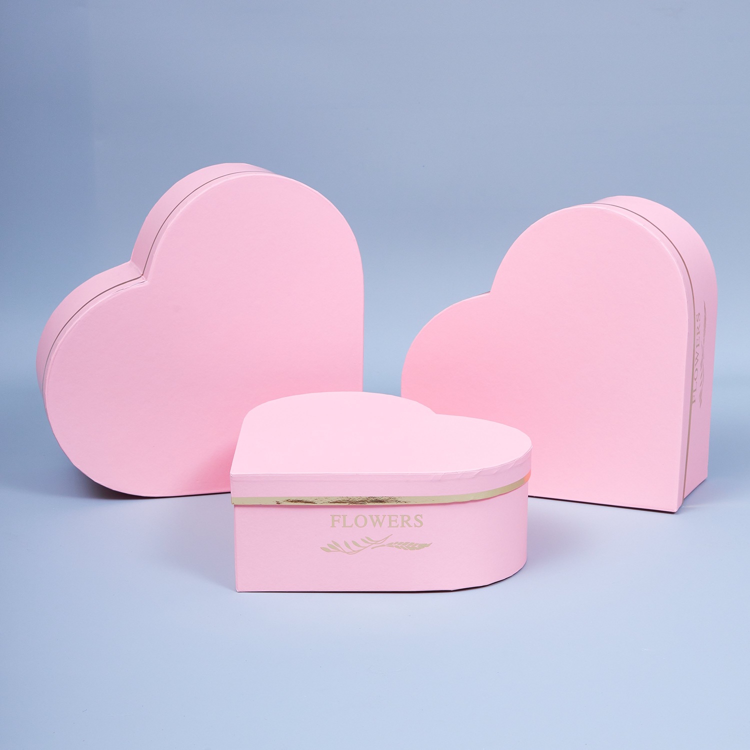 Набор коробок Сердце "Flowers" 3шт, L 28,5*26*11cm, M 25,7*23,5*10cm, S 23,5*21*8,5cm, розовый