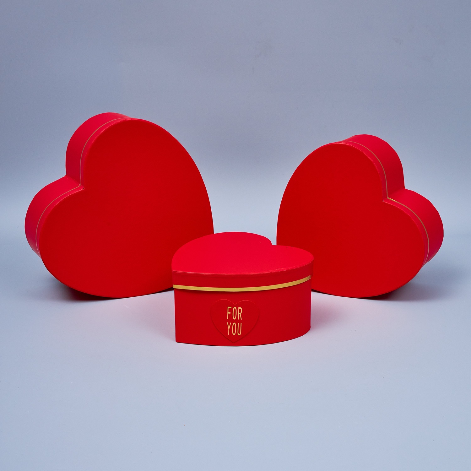 Набор коробок сердце "For You", 3 шт, L:27x27x12cm; M:23.5x23x11cm; S:19x19x10cm, красный