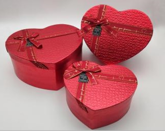 Набор коробок "Сердце металл" 3шт, 23*27*13cm, 21*23*12cm, 18*20*10cm, красный
