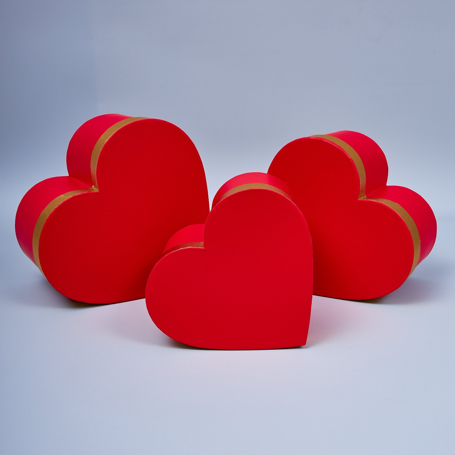 Набор коробок сердце "Золотой кант", 3 шт, L:27x24x15.3cm; M:24x20.8x14cm; S:21x18.7x12.3cm, красный