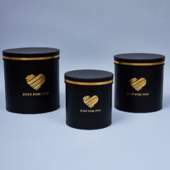 Набор коробок с крышкой "Сердечко", 3 шт, L:20x20.5cm; M:18x18.5cm; S:15x15.5cm, черный