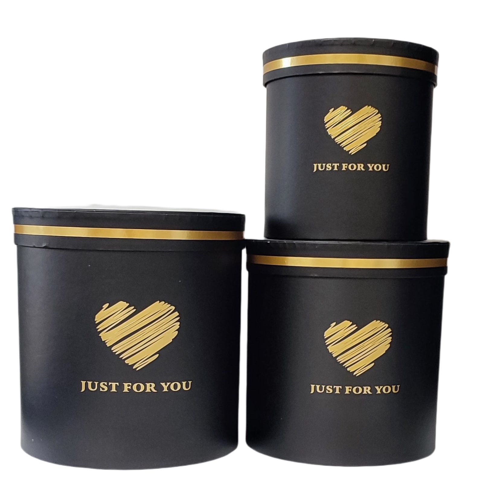 Набор коробок с крышкой "Сердечко", 3 шт, L:20x20.5cm; M:18x18.5cm; S:15x15.5cm, черный
