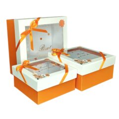 Набор коробок с прозрачным окном, 3шт, "Цветы", 21.5*21.5*10, 18*18*9, 15*15*7.5см, оранжевый