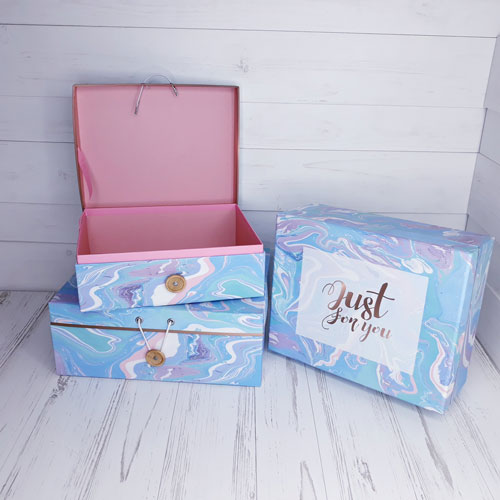 Набор шкатулок "Акварель" L:27x22x11cm M:25x20x10cm S:23x18x9cm, цв.голубой
