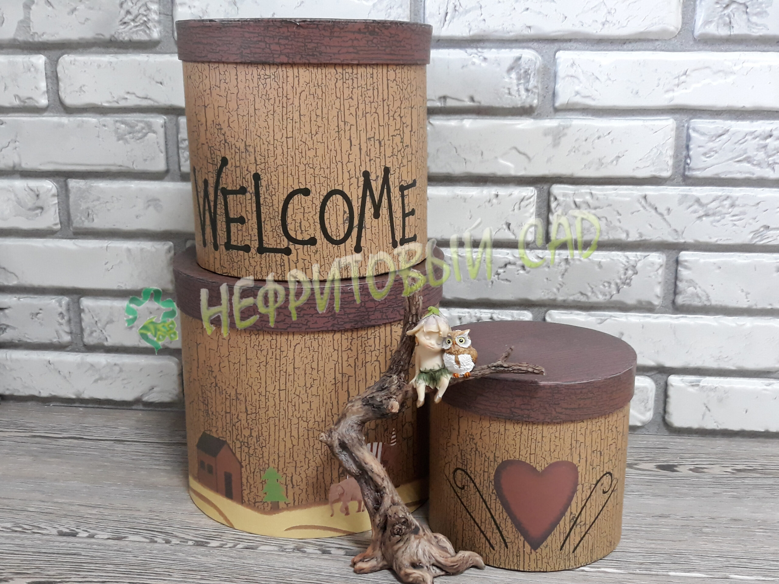 Набор шляпных коробок 3шт L.20x17.2cm M.17.5x14.6cm S.14x12.6cm