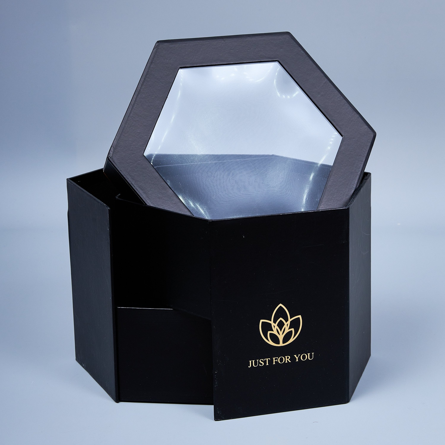Коробка подарочная с прозрачной крышкой "Шестигранник", 23x20x16.5cm, черный
