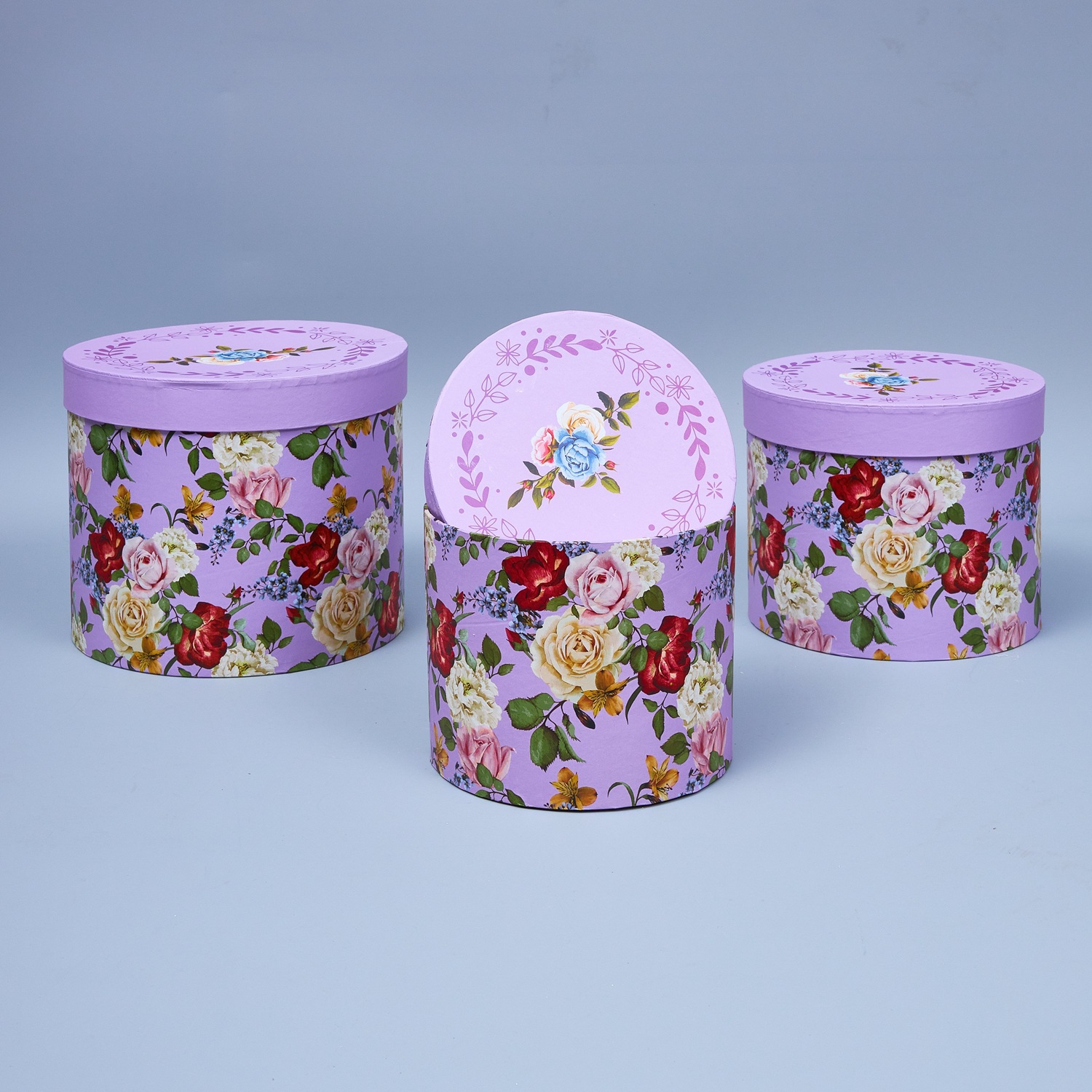 Набор коробок, 3шт, "Цветы", 21.2*21.2*17.5, 18.7*18.7*14.3, 16.2*16.2*13.3, сирень