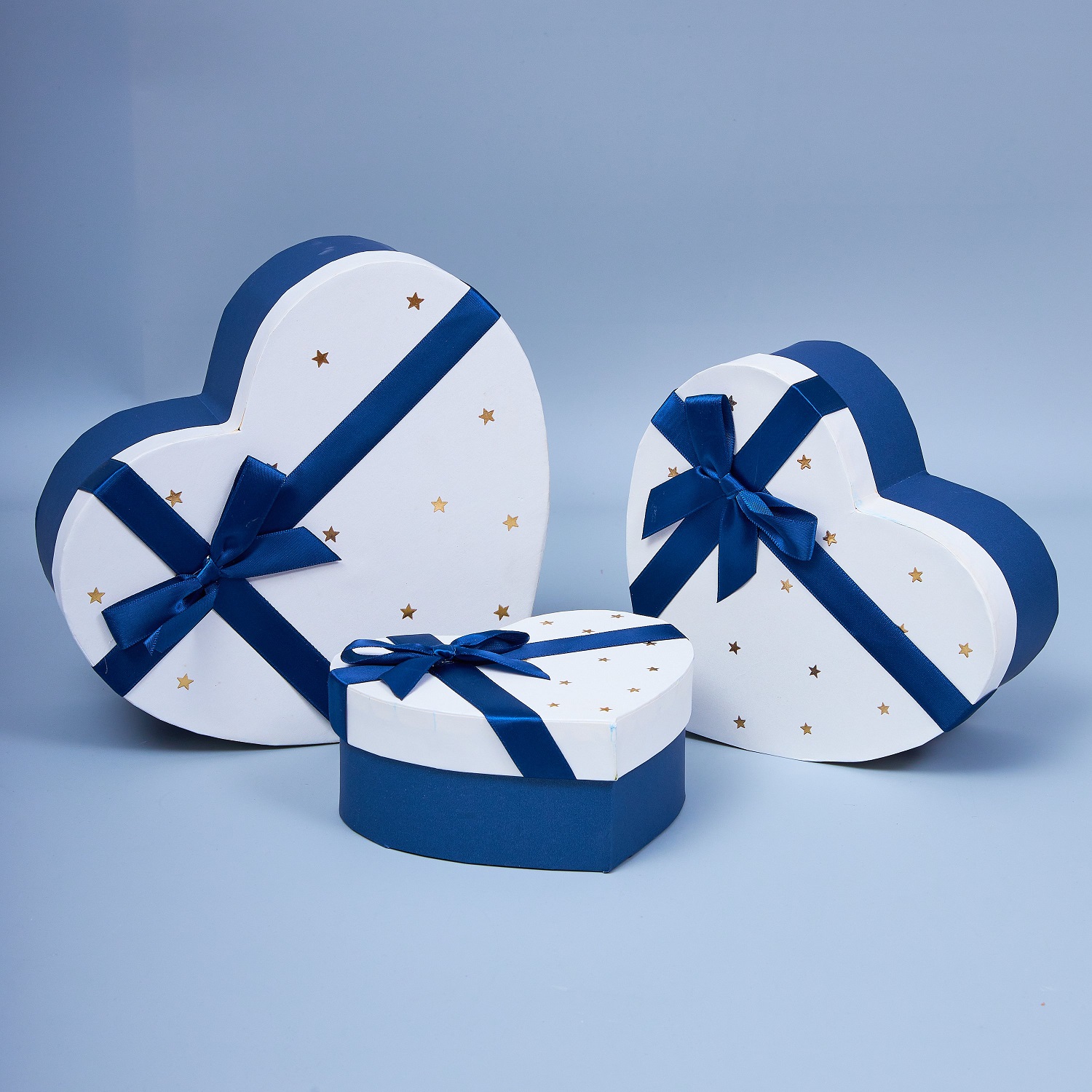 Набор коробок, 3шт, "Сердце с бантиком", 23.5*21*9.5, 19*18*7.5, 15.5*13.5*6.5см, синий/белый