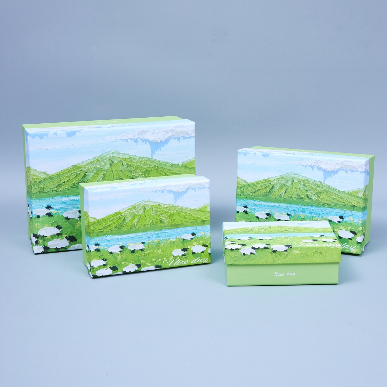 Набор коробок, 4шт, "Акварель", 29*21*11.5, 22.5*16*9.5, 20*14*8, 17.5*12*6.5, салатовый