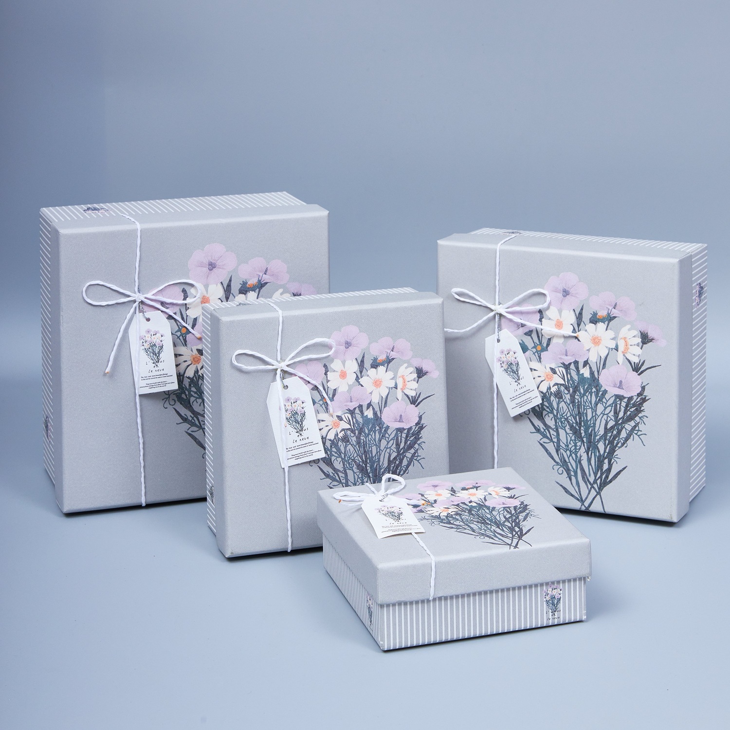 Набор коробок 4шт L19*19*10.5 M17*17*9 S15*15*7 XS13*13*5, серый