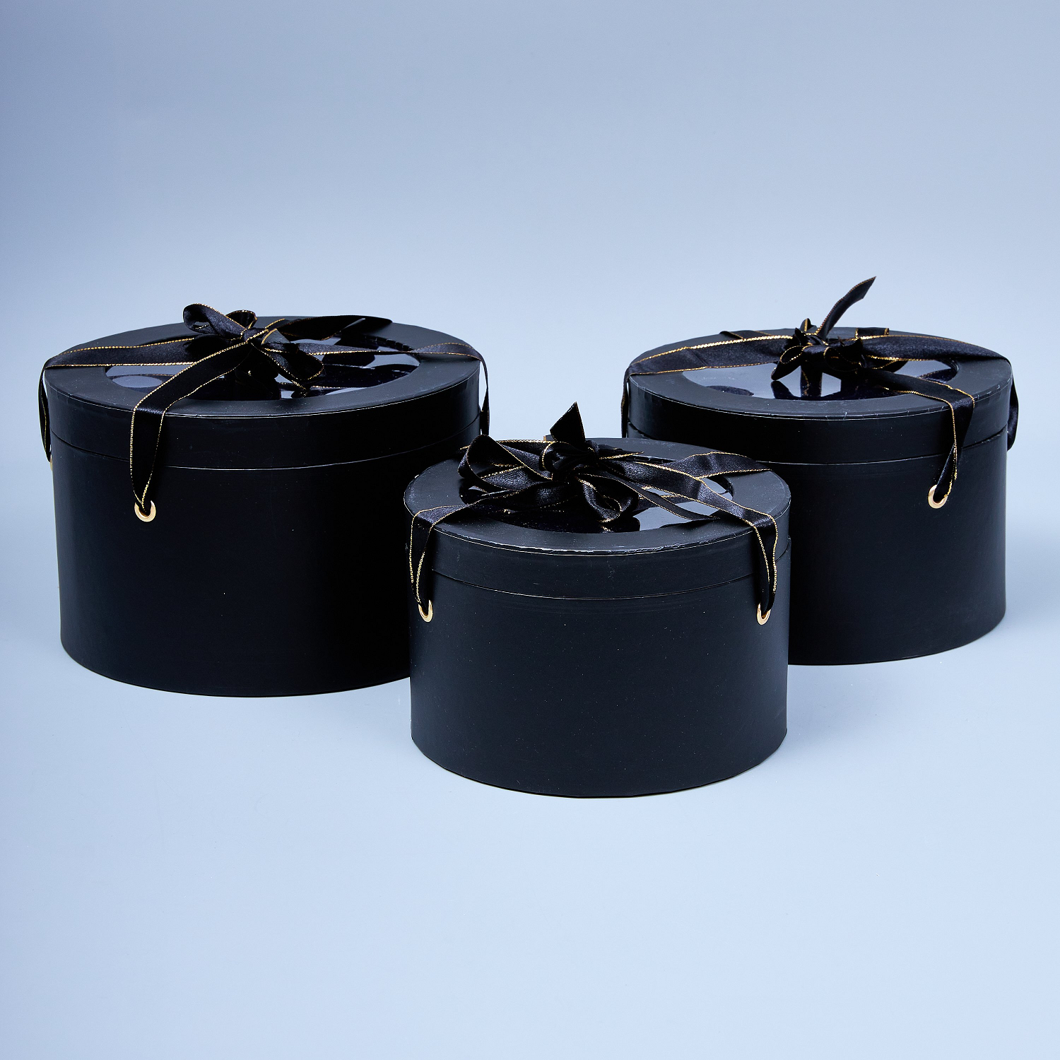 Набор коробок, "Аквариум Цилиндр" 3шт, L:20.5x18.5cm, M:18.5x16.5cm, S:16.5x15cm, черный