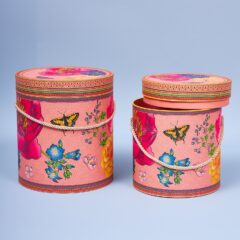 Набор коробок "Цветы и бабочки", 2 шт L:19x21cm S:17x19cm, цилиндр, цв.пудра