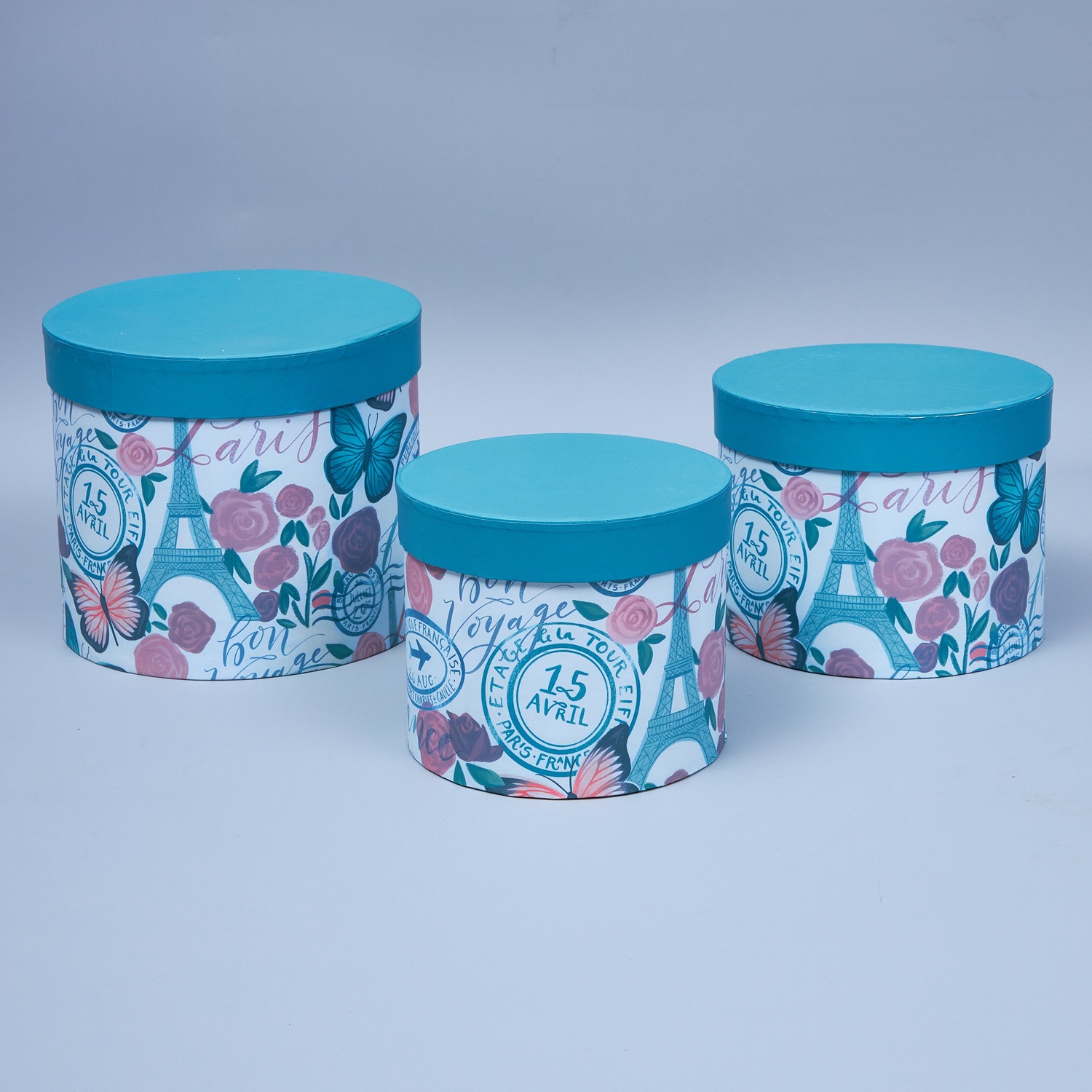 Набор коробок "Марка", 3 шт.,L:21.2x19.5cm M:18.7x17.5cm S:16.2x15.5cm, цилиндр, цв.синий