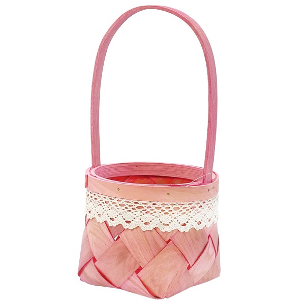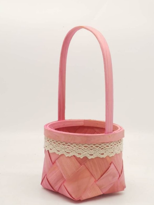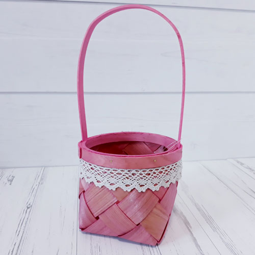 Корзина из бересты (секвойя) 14*11,5/28,5, круг, розовый