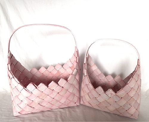 Корзины из бересты (секвойя) 26*18*15,5/38,5, 23*15*13/30,5, 2шт, сумка, розовый