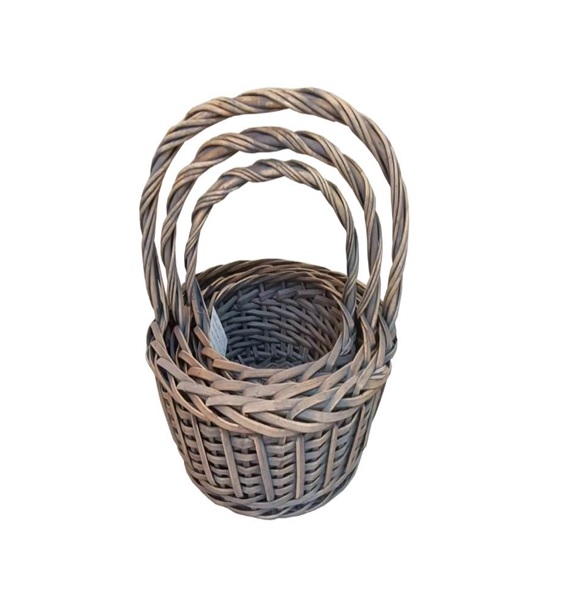 Корзины из ивы "Премиум" 43*20*35*43, 35,5*17,5*28,5*37,5, 28*15*22*32, 3шт, круг, серый
