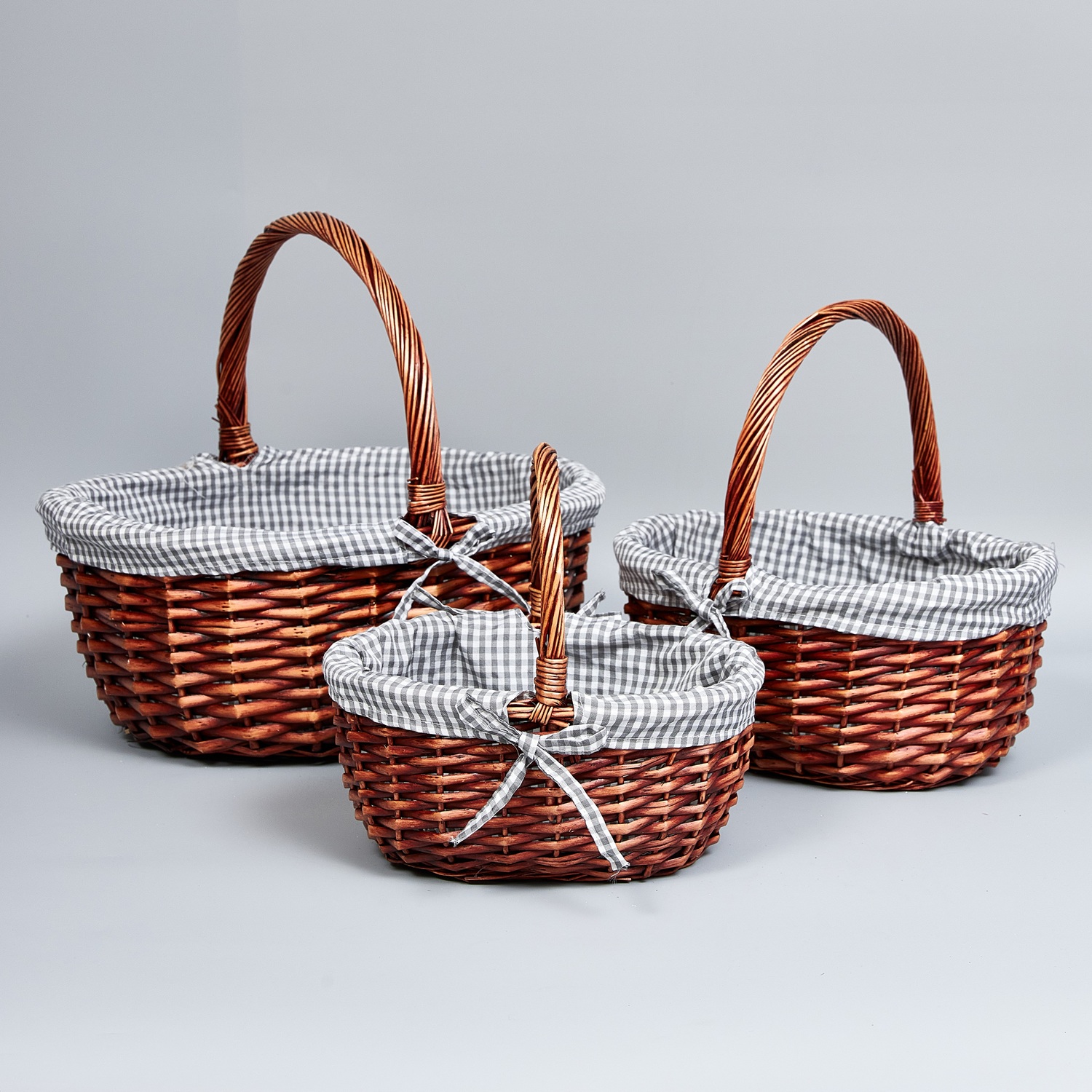 Корзины из ивы 39*30*16*35, 33*24*14*30, 26*19*13*25, 3шт, овал, коричневый