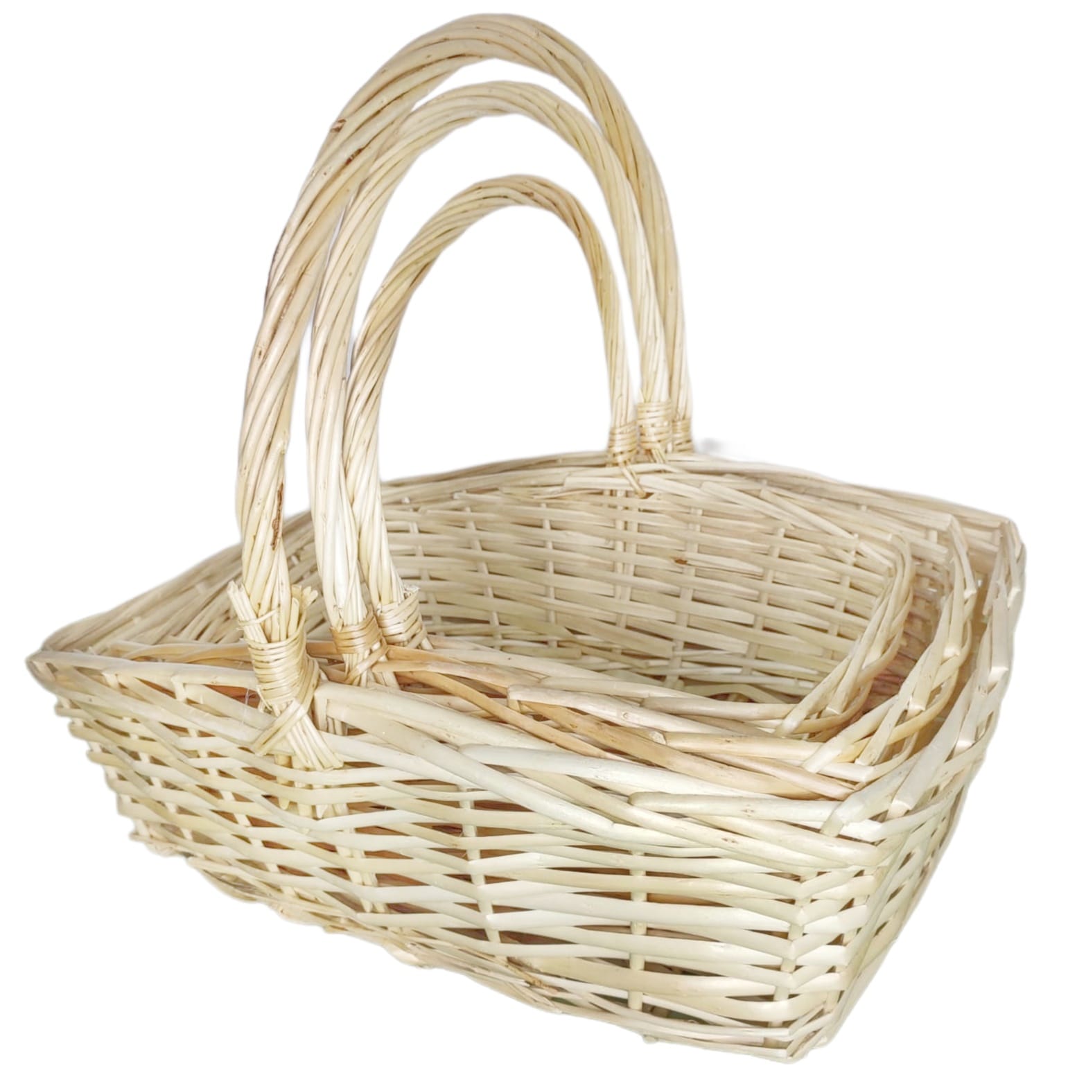 Корзины из ивы 40*28*15*12*35, 33*25*14*10*30, 29*20*11*8*25, 3шт, квадрат, выбеленный